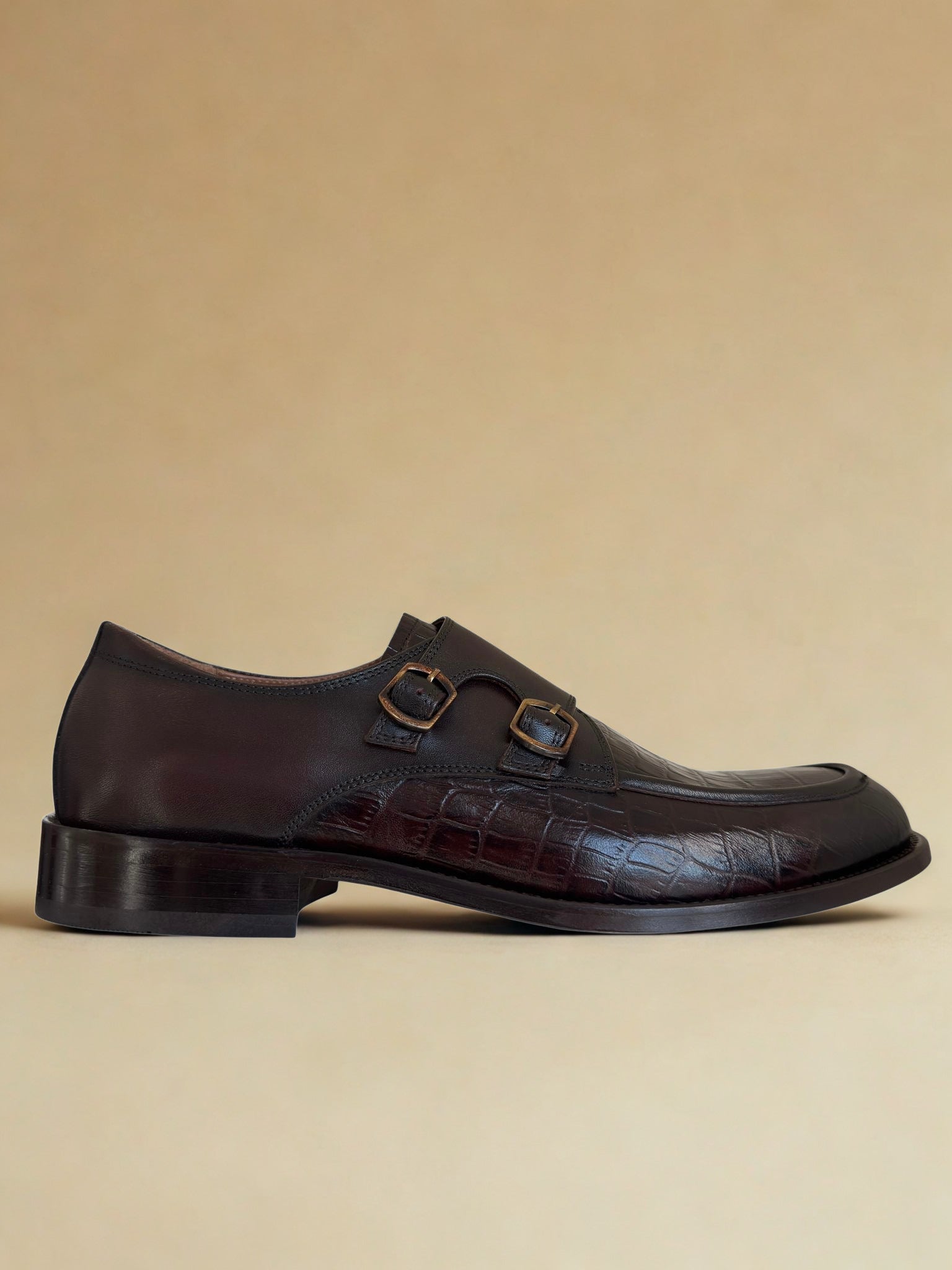 Zeli Bruine Klassieke Leren Monk Strap Schoen